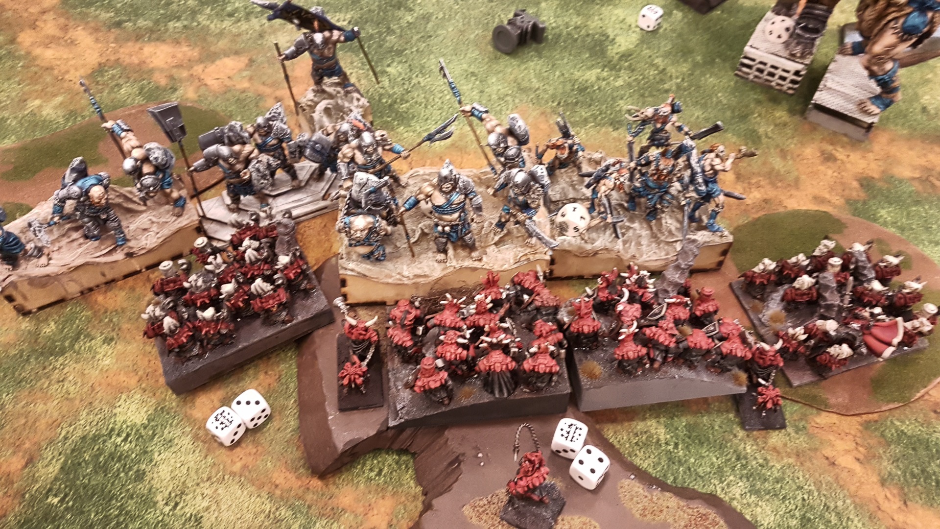 Here the formation has been backed up with some Large Infantry heavy hitters. If the enemy breaks through the frontline, they’ll probably have taken some damage on the way in and then they’re facing down a couple of hordes of angry ogres (or similar). Not a great position to be in.
