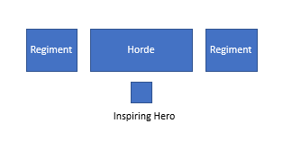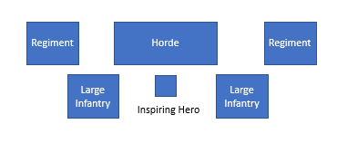 For me the ideal starting point is a horde of infantry with artefacts or two handed weapons for additional damage dealing, two regiments of infantry sat on either side of the horde to protect it from being flank charged, and a hero or army standard bearer stood behind for Inspiring coverage.