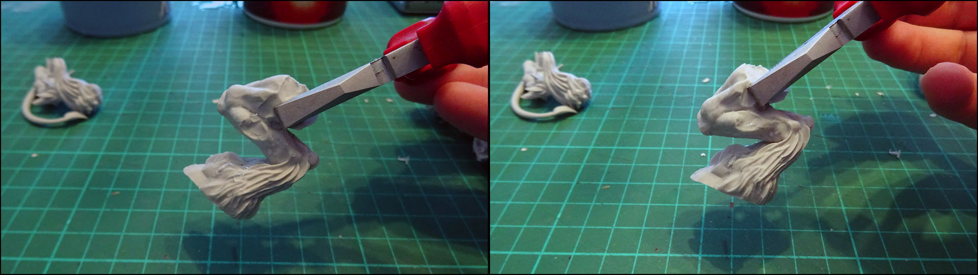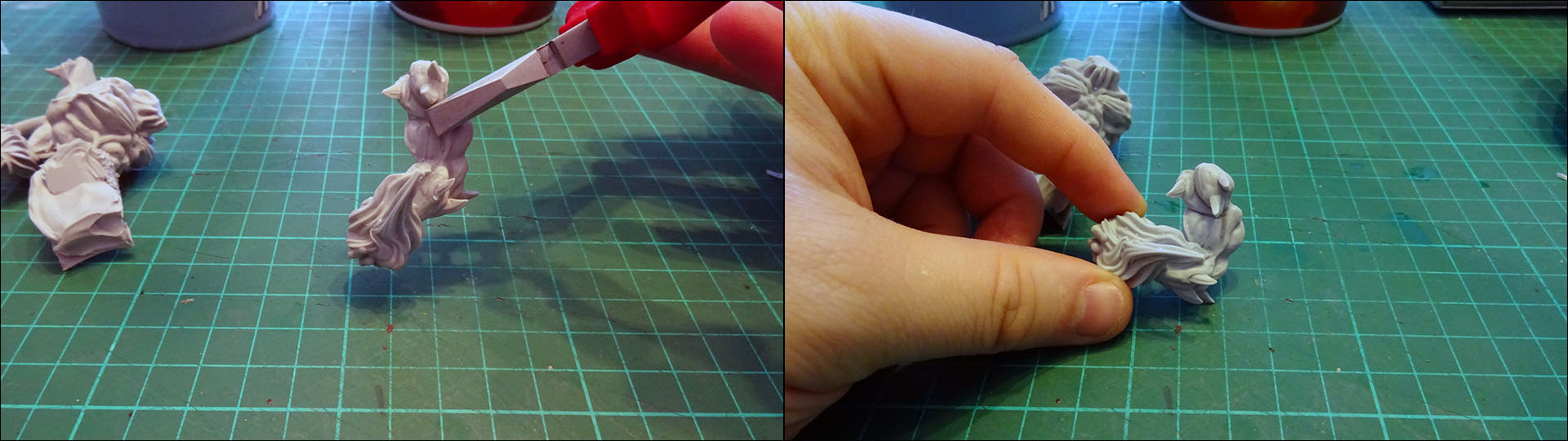 There’s quite a bit of the nappy left over on the upper body from this cut so I just go around with a knife and cut the excess off: