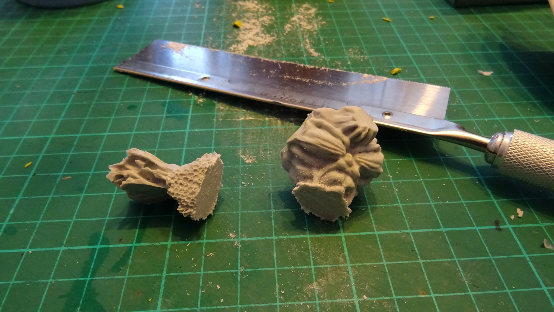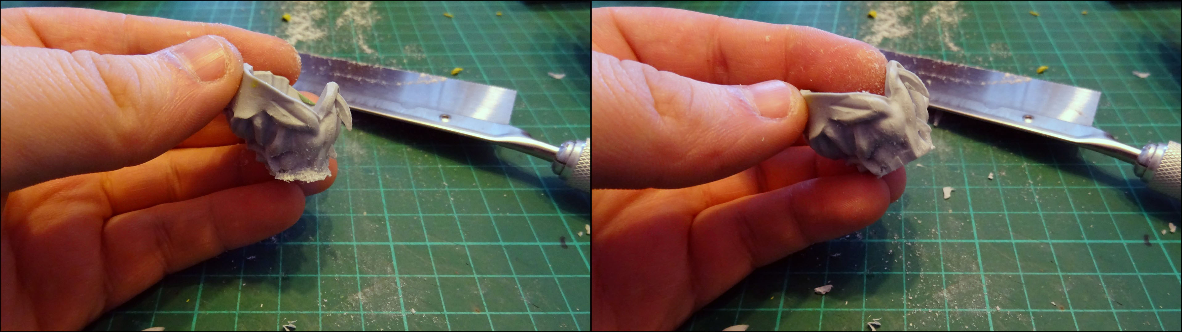 If we’re twisting the upper body to the side, unfortunately that means that the head is still going to be unnaturally facing straight forwards. That calls for a bit of a trim of both the neck and the back of the horns on the head.
