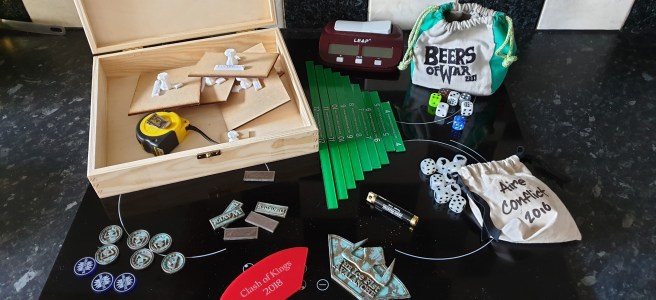 Keeping them all in a single box like this means I can just grab it and go to the next event, and not worry that I’ve remembered my dice but not my arc templates, or that I’ve forgotten a chess clock, or any of the numerous other things that I put in there.