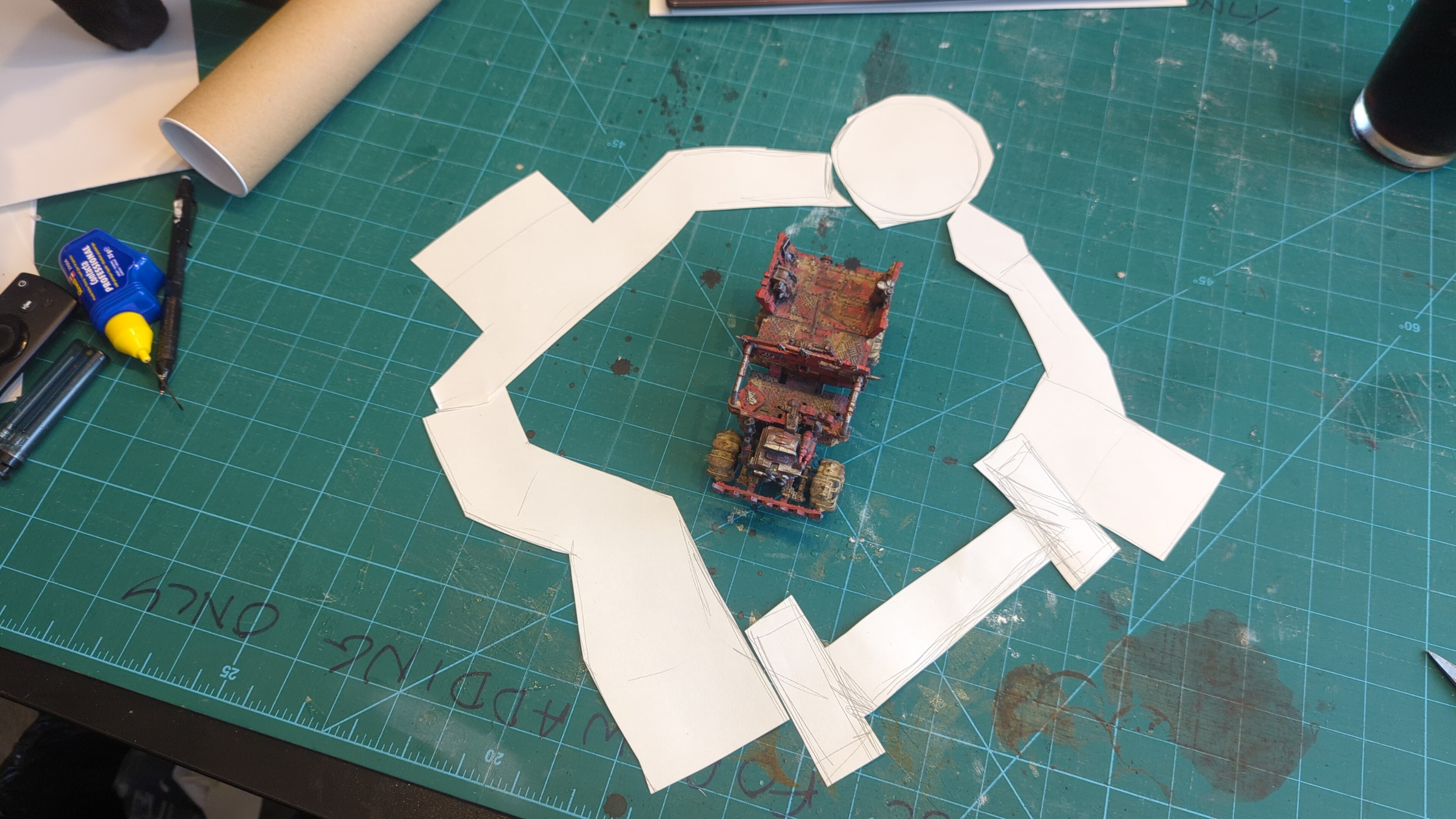At this stage I used exclusively 1mm plasticard for strength. While it can be tempted to go to 2mm thick plasticard, it’s generally unnecessary for Ork construction and it’s much harder to work with. Once you put the panels on, the thickness is fine.