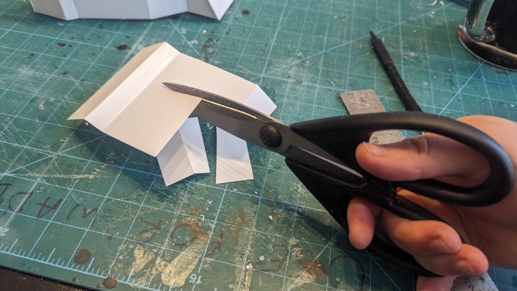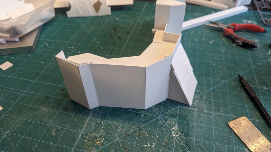 The next step was to cut the rough shape out of plasticard. I decided to use plasticard rather than card because it is much more durable and easy to detail with. When it comes to cost, it’s not too excessive. I ordered a new set of plasticard sheets for £20 and I had plenty left over at the end of the build.
