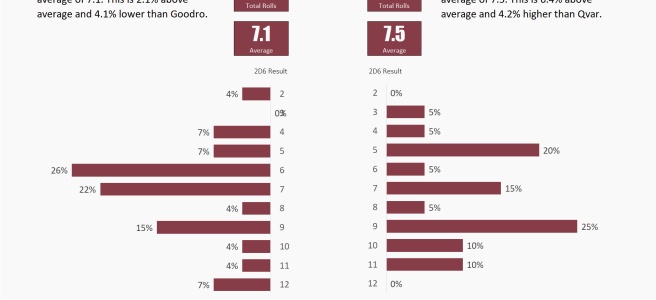 For those who know what it is, here is the download. For those who don't know, I've written an Excel dashboard which takes a chatlog from Universal Battle and displays the dice statistics: This allows you to truly see if one player rolled particularly hot during a game but you'll often be surprised at just … Continue reading Universal Battle Dice Dashboard